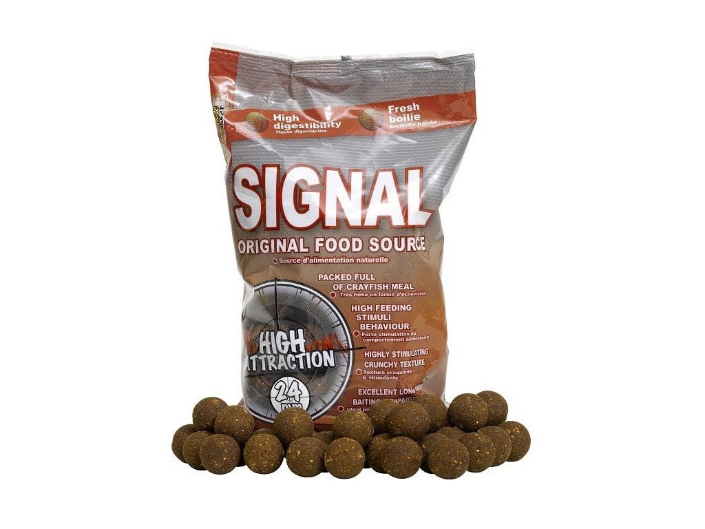 Starbaits Boilies Concept Signal 20mm 2.5kg - Nová koncepcia boilies vytvorená z kombinácie viacerých druhov výberových rybacích múčok s obsahom veľkého množstva múčky zo sladkovodného raka.Hrubá štruktúra je tvorená škrupinami z kôrovcov. Je bohaté na extrakty sladkovodných živočíchov ako je patentka, gamarusy, mušle a pod., ktoré z tohto boilies vytvárajú neodolateľnú potravu pre kapra. Ľahkú stráviteľnosť a zvýšenie atraktivity mu dodáva špeciálna zmes korenia vrátane Robin Red.