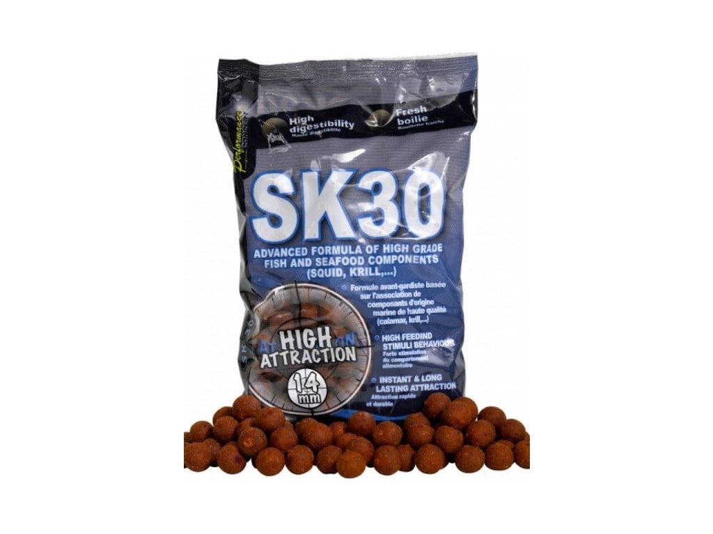 Starbaits Boilies Concept Sk 30 14mm 1kg - Boilies Starbaits SK 30 je vytvorené z vysoko kvalitných a čisto prírodných surovín, bez akéhokoľvek použitia syntetických príchutí.Boilies SK30 obsahuje len vybrané suroviny majúce extrémne vysokú lákaciu schopnosť (výťažok z kalmára a krilu, rybiu múčku sušenú pri nízkej teplote a rozpustné rybie proteíny).