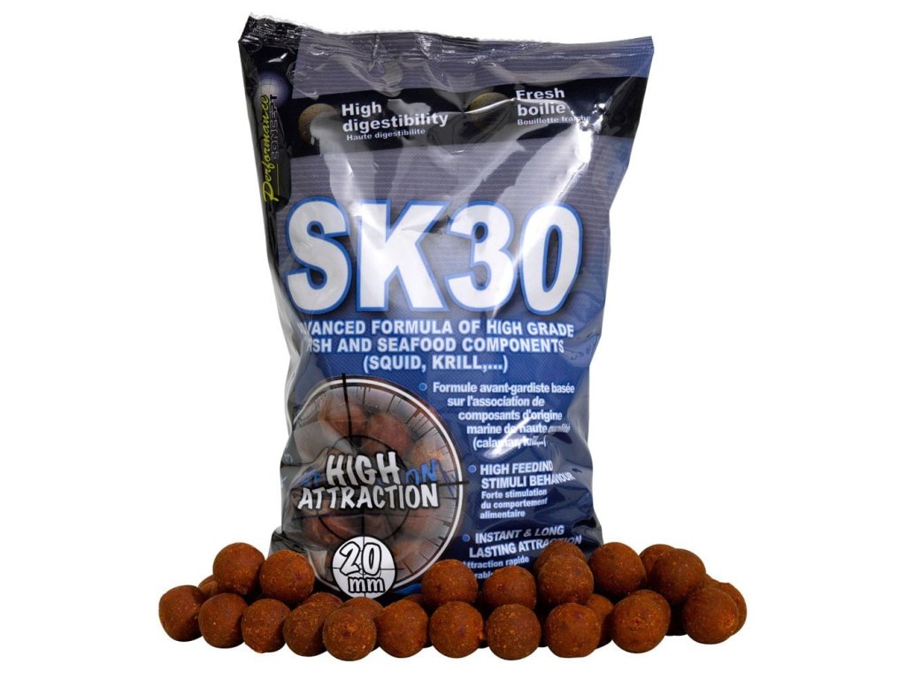 Starbaits Boilies Concept SK 30 1kg 20mm - Boilies Starbaits SK 30 je vytvorené z vysoko kvalitných a čisto prírodných surovín, bez akéhokoľvek použitia syntetických príchutí.Boilies SK30 obsahuje len vybrané suroviny majúce extrémne vysokú lákaciu schopnosť (výťažok z kalmára a krilu, rybiu múčku sušenú pri nízkej teplote a rozpustné rybie proteíny).