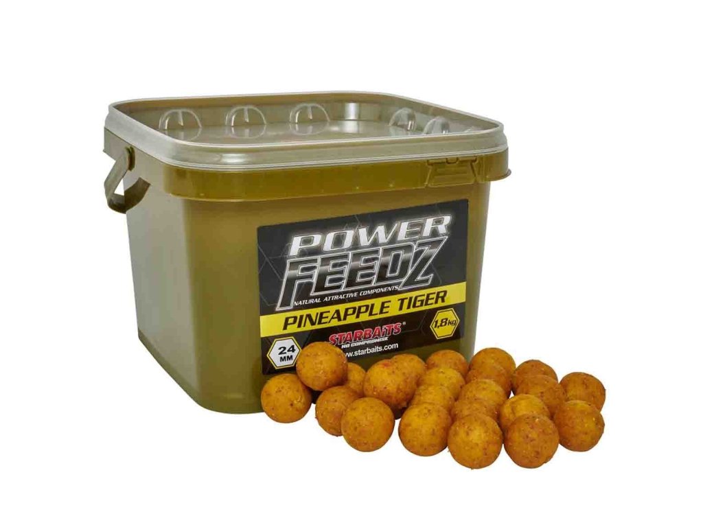 Starbaits Boilies Feedz Pineapple Tiger 24mm 1,8kg - Séria Power Feedz boilies vychádza z receptúr klasickej série Feedz, ktorá je postavená na čisto prírodných zložkách, najmä na báze orechov, zmesi semien a rybích múčok.