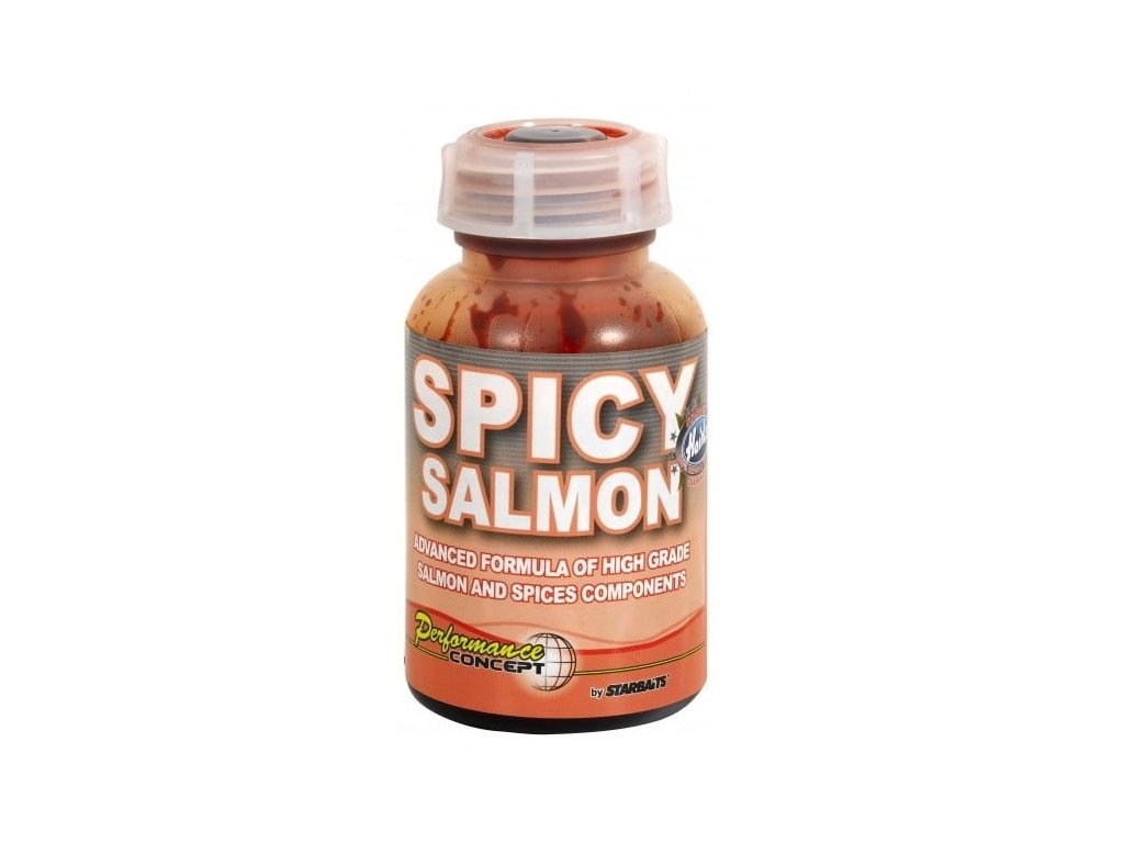 Starbaits Dip Spice Salmon 200ml - Zvýrazňuje pachovú a chuťovú stopu nástrahy (boilie, partikel, kŕmenie, ..). Obsahuje amino-kyseliny. Je vyrobený z tekutých extraktov bohatých na aminokyseliny vytvárajúce potravinový signál pre ryby.