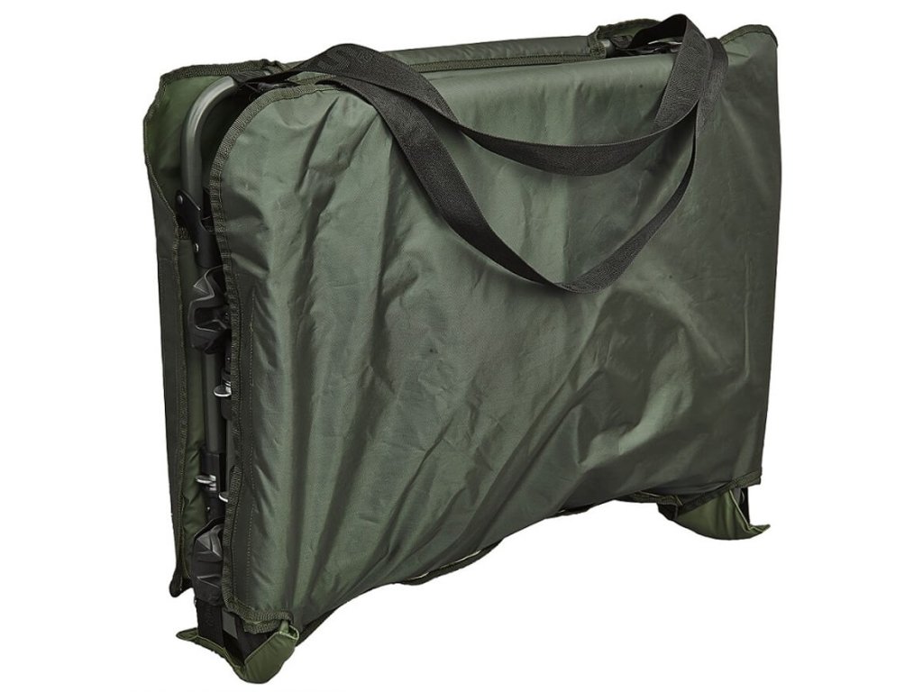 Olivový zelený materiál je odolný voči vode, odolný voči poškriabaniu a ľahko sa čistí. Materiál i šitie sú dostatočne pevné, aby zvládli akúkoľvek obrovskú rybu. Podložka je čalúnená a má ochrannú textúru. Šikovný kryt na suchý zips a rukoväte na prenášanie robia túto podložku dobrou voľbou pre každého rybára.