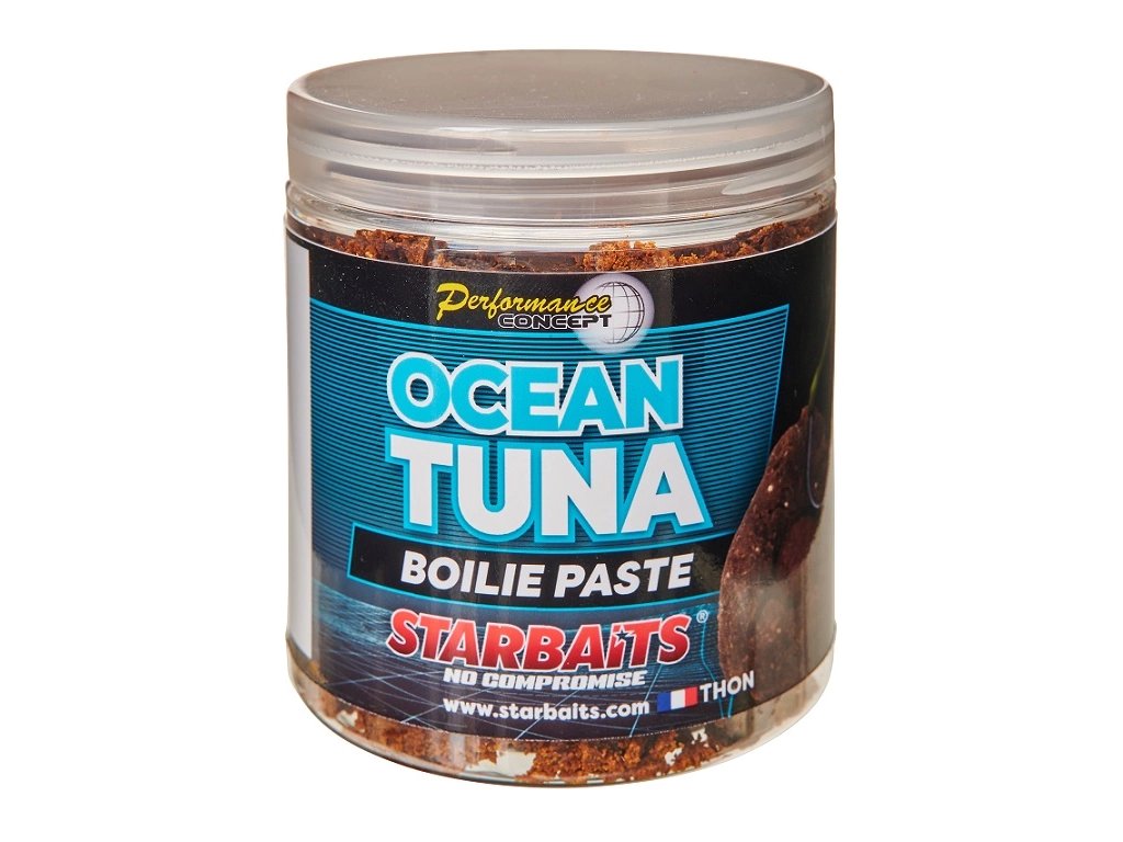 Starbaits Paste Baits Ocean Tuna 250g - Obaľovacia pasta na zvýšenie pachovej a chuťovej stopy boilies alebo inej nástrahy. Pasta obsahuje účinné látky, ktoré sa pozvoľna uvoľňujú a vytvárajú drobný zákal okolo nástrahy. Navyše obsahuje aktívne mikro-častice, ktoré pulzujú okolo nástrahy alebo pomaly stúpajú vodným stĺpcom. Lepivá konzistencia pasty umožňuje ľahké obalenie nástrahy a dobre na nej drží.Príchuť: Tuniak