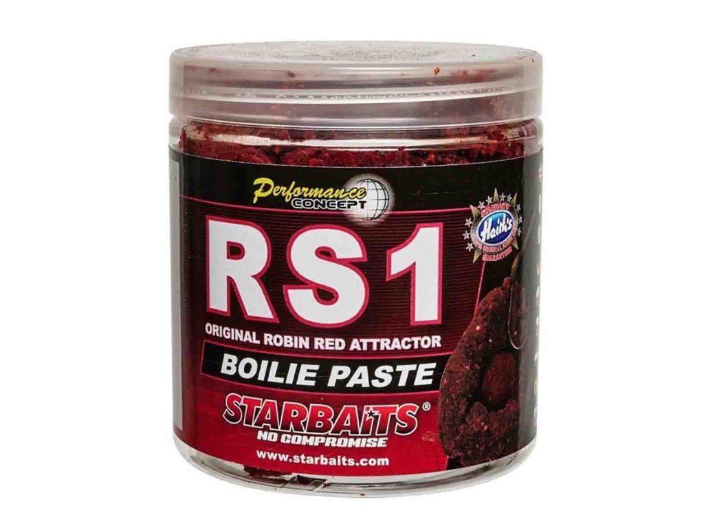 Starbaits Paste Baits RS1 250g - Obaľovacia pasta pre zvýšenie pachovej a chuťovej stopy boilie alebo inej nástrahy. Pasta obsahuje účinné látky, ktoré sa pozvoľna uvoľňujú a vytvárajú drobný zákal okolo nástrahy.