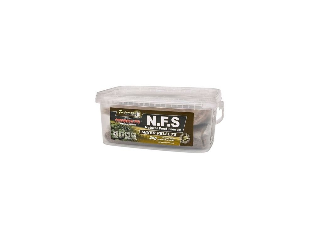 Starbaits Pelety mix N.F.S. 2kg - Dva druhy peliet (2 mm a 4 mm) zabalené zvlášť v 1kg vreckách. Súčasťou je aj tekutý booster pre zatraktívnenie peliet v rovnakej príchuti. Ideálne pre použitie do PVA.