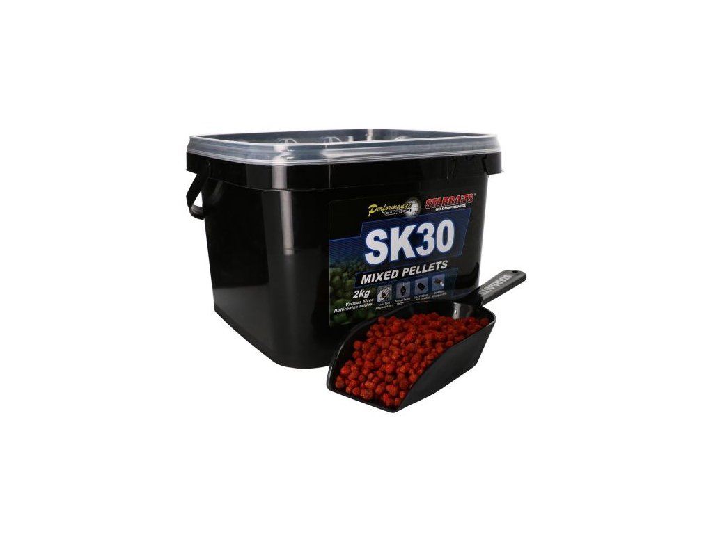 Starbaits Pelety Mixed SK30 2kg : Sú bohaté na prírodné extrakty a majú vysokú výživnú hodnotu. Výrazne dokážu zvýšiť atraktivitu miesta s vašou nástrahou. Možnosť použitia ako do PVA materiálov, tak aj do vytvorených kŕmnych gulí. Rýchlo lákajú kapry na kŕmne miesto. Ide o mix drobných peletiek. Dodávané v praktickom vedre s vekom.