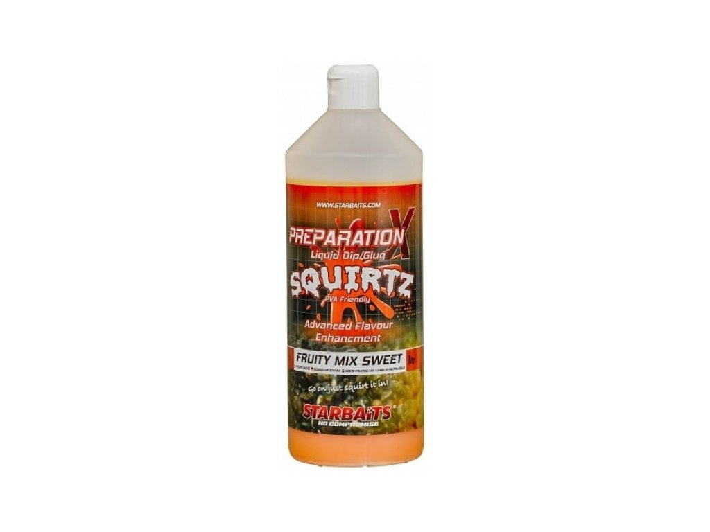 Starbaits Prep x Squirtz 1L Fruity Mix Sweet - Prep X Squirtz je hustý tekutý posilovač určený pre zvýšenie atraktivity Vašej návnady.