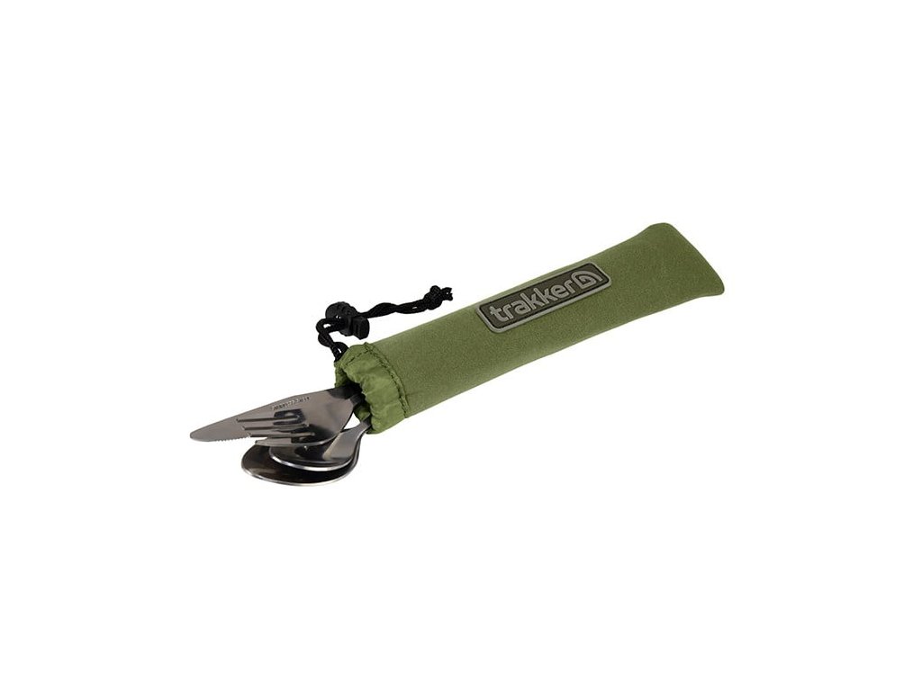 Trakker Armolife Cutlery Set Jedálenská sada príborov - Kompaktná a pohodlná súprava príborov Armolife je štvordielna súprava, ktorá obsahuje nôž z nehrdzavejúcej ocele, vidličku, lyžicu a lyžičku, všetko dodávané v praktickom neoprénovom ochrannom puzdre, ktoré možno ľahko skladovať.