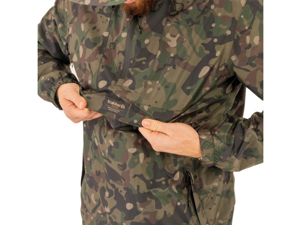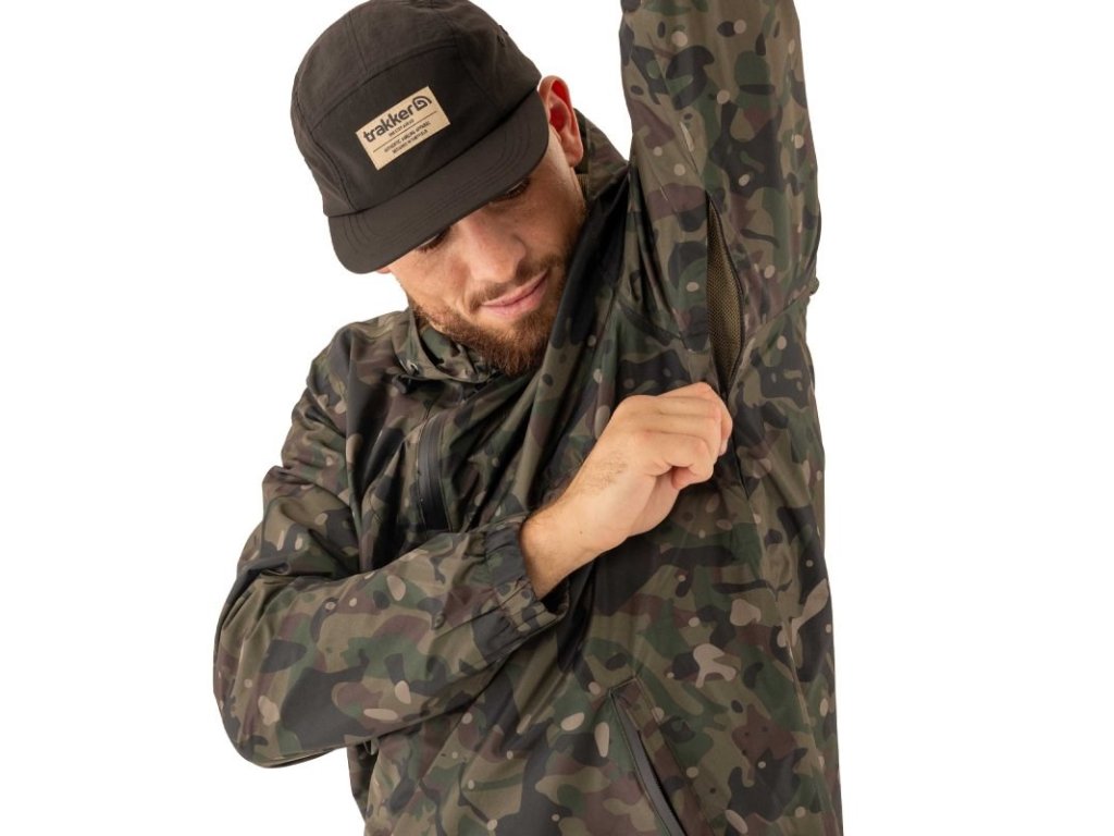 Je navrhnutá tak, aby poskytovala optimálny výkon za každého počasia, má nepriepustné zipsy, odvetrávacie zipsy v podpazuší a zdobí ju výrazný kamuflážny vzor Trakker.