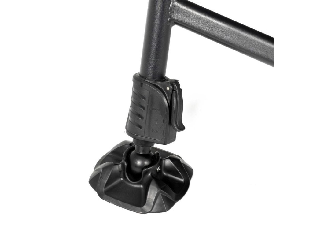 Lehátko má plne nastaviteľných 8 nôh s otočnými pätkami pre rovnomerné rozloženie záťaže, silný rám s plne plochým profilom a vodováhou pre dokonalé vyrovnanie aj na nerovných svahoch.