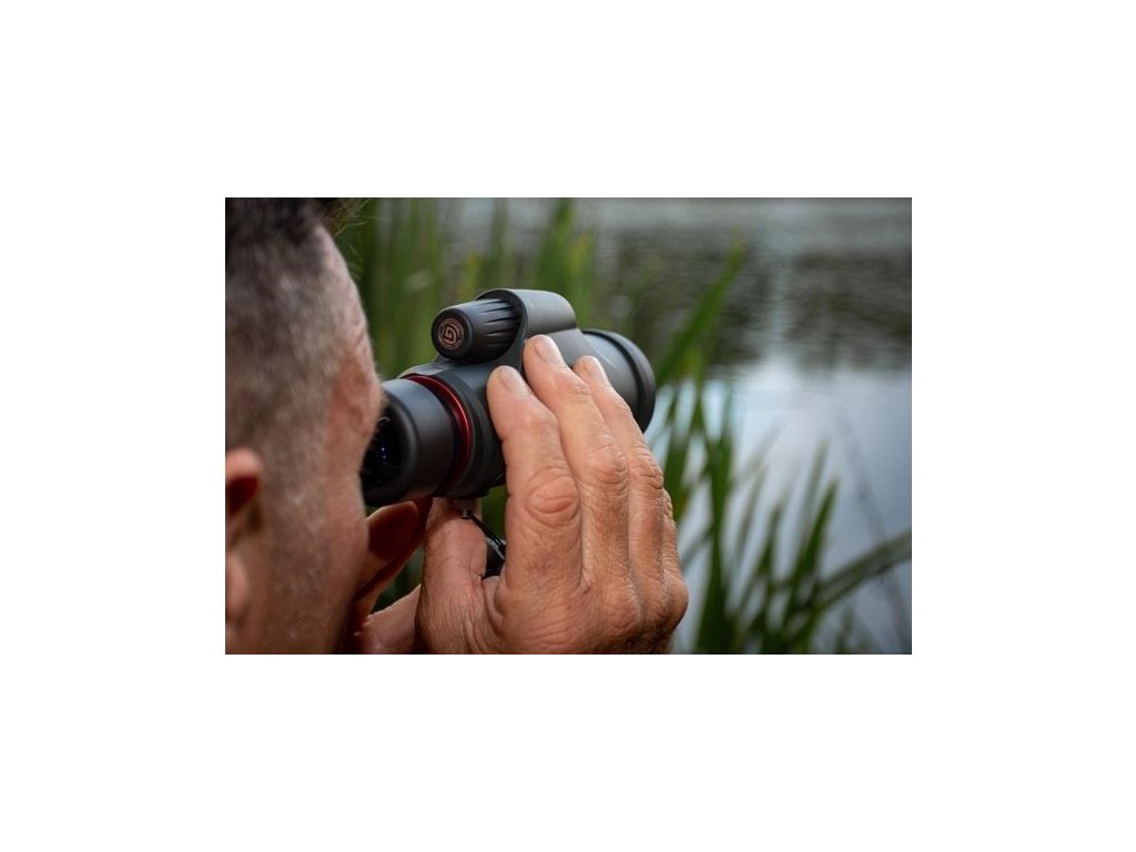 Mnohovrstevné šošovky s priemerom 42 mm dovoľujú svetlu lepšie prejsť do oka, a tak poskytujú väčší zorný uhol, čo oceníte hlavne za šera, kedy sú ryby najaktívnejšie. Ďalekohľad má robustné pogumované telo, vďaka čomu sa skvele drží. Ďalej je vybavený veľkým ostriacim kolieskom v stredovej časti, takže môžete vidieť ostro od vzdialenosti 2,5 m až tam, kam vaše oko dovidí. Komory ďalekohľadu sú očistené dusíkom, čo zabraňuje zahmlievaniu. Ďalekohľad váži iba 324 g, vďaka čomu môžete sledovať vodnú hladinu bez bolesti rúk. Je dodávaný s prepravným obalom, remienkom na krk a látkou na čistenie šošoviek.