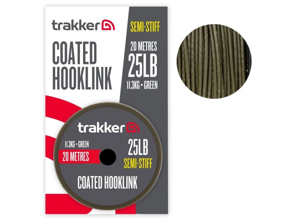 Trakker Semi Stiff Coated hooklink 25lb 20m : Maskovaná, polotuho potiahnutá náväzcová šnúrka. Ideálne na chytanie na ľubovoľnom dne.