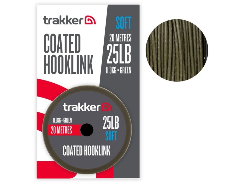 Trakker Soft Stiff Coated hooklink 25lb 20m : Maskovaná, mäkko potiahnutá náväzcová šnúrka. Ideálne na chytanie na ľubovoľnom dne.