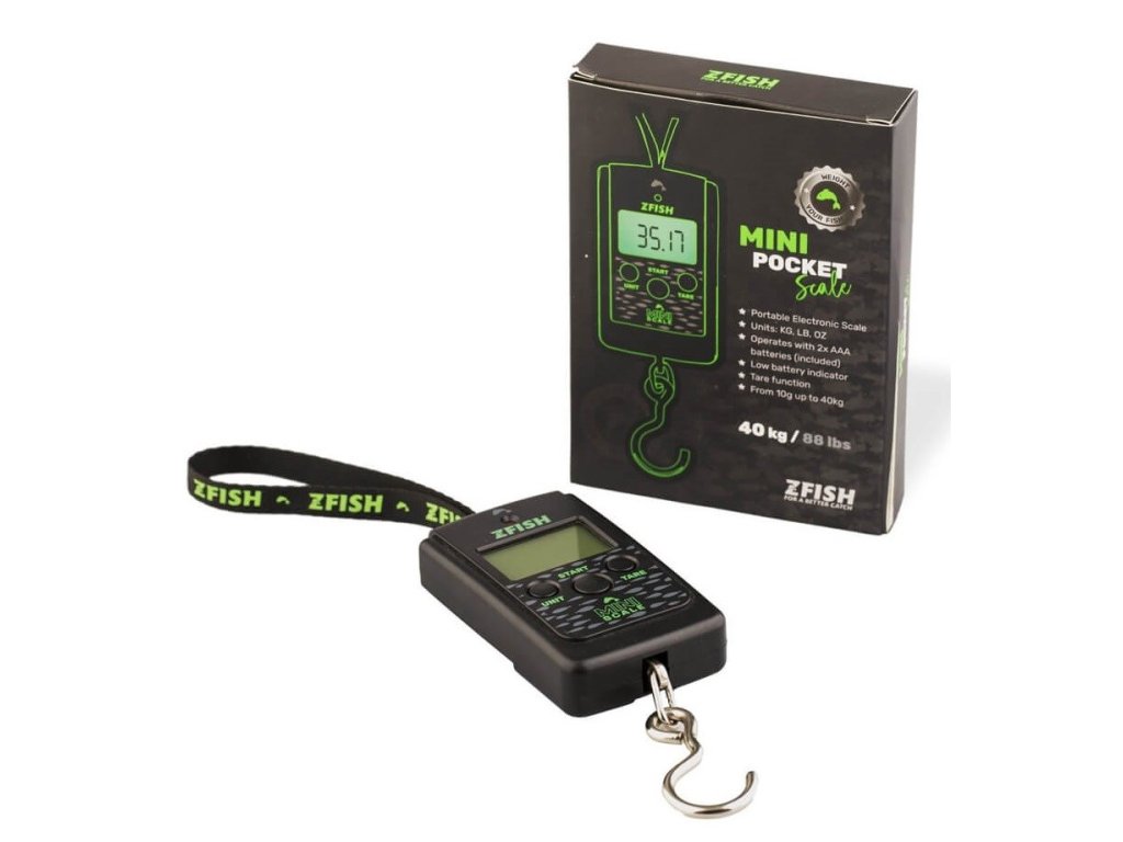 Táto praktická, vrecková váha s jednoduchým ovládaním pomocou troch tlačidiel umožňuje skutočne rýchle zváženie Vašich úlovkov až do 40kg. Zapnutie a vypnutie prebieha stlačením tlačidla ON/OFF. Krátkymi stlačeniami tlačidla UNIT zmeníte jednotky hmotnosti (kg, lbs, oz), Funkcia TARE umožňuje odpočet hmotnosti vážiacich pomôcok ako sú saky, tašky a podobne.
